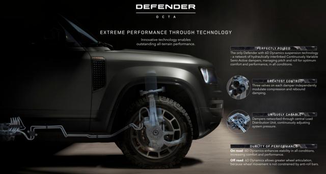 除了動(dòng)力,底盤也很有亮點(diǎn)。OCTA采用了攬勝SV那套雙腔三閥空懸的6D動(dòng)態(tài)懸架系統(tǒng)。這套空氣懸架系統(tǒng)能讓懸架可硬可軟,使車輛在各種路況下行駛穩(wěn)定,在極端情況下車輪有550mm的自由行程?!叭y”可實(shí)時(shí)分配壓力,抵消車身側(cè)傾和俯仰。