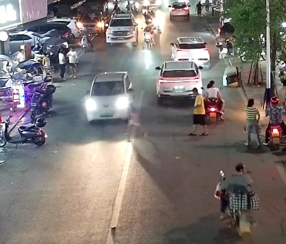 10月1日,盧某駕駛小型新能源汽車從賀州市賀街老橋駛往蓮塘方向。當(dāng)車輛行駛至賀街臨江路段時(shí),對(duì)向車道有車輛駛來,兩車會(huì)車瞬間視線被遮擋。就在這時(shí),一名小女孩突然從對(duì)向車輛后方跑出,直沖到行車道中間。