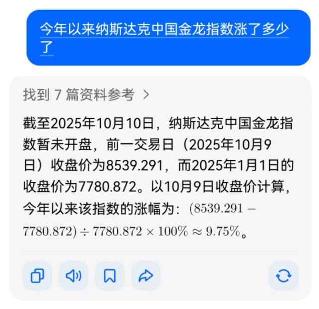 當(dāng)我們提問(wèn):‘今年以來(lái)納斯達(dá)克中國(guó)金龍指數(shù)漲了多少了’