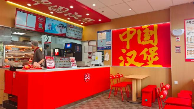它家現(xiàn)搟現(xiàn)烤的餅皮散發(fā)著麥香,口感十分扎實,夾上香辣多汁的雞腿肉,每一口都充滿中式風(fēng)味。店內(nèi)的國潮設(shè)計盡顯年輕活力,和朋友在這里邊聊天邊吃漢堡,輕松又愜意,是好友小聚的新去處!