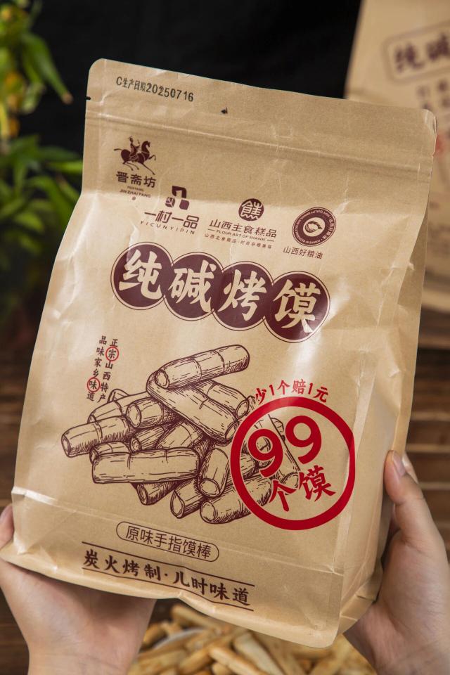 好吃的饃離不開好原料和老手藝。這款烤饃只用山西本地優(yōu)質(zhì)小麥粉,和面團(tuán)時(shí)不用酵母,全靠純堿發(fā)酵。純堿能中和面團(tuán)里的酸性,對(duì)胃尤其好。