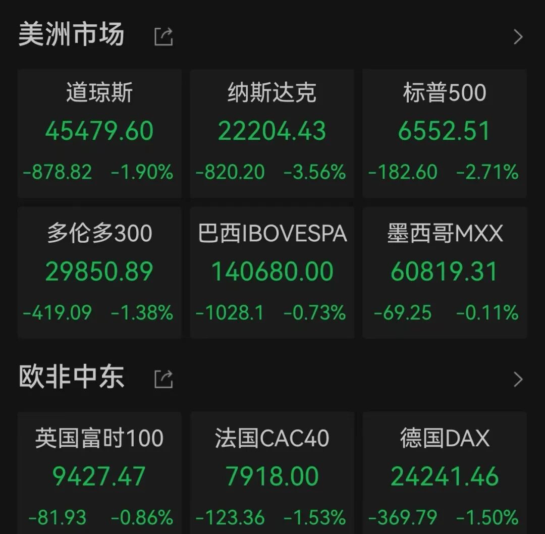 當(dāng)?shù)貢r(shí)間10月10日,歐美股市集體下跌,其中納斯達(dá)克指數(shù)大幅下跌820.20點(diǎn),跌幅達(dá)3.56%。