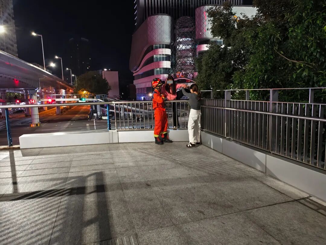 消防救援人員聯(lián)系報警人,確認其就是跳橋女生,該女生正處于萬象城天橋上。