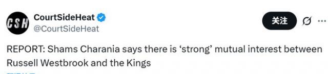Shams在節(jié)目中稱:“拉塞爾 - 威斯布魯克與薩克拉門托國王隊(duì)之間有強(qiáng)烈的雙向興趣。國王隊(duì)正缺少一名替補(bǔ)控衛(wèi),上賽季他們的替補(bǔ)得分和替補(bǔ)助攻兩項(xiàng)數(shù)據(jù)均排在聯(lián)盟第29位,威斯布魯克的加盟正好可以改善這種狀況,而且他和國王隊(duì)管理層及球員的關(guān)系都不錯(cuò)。”