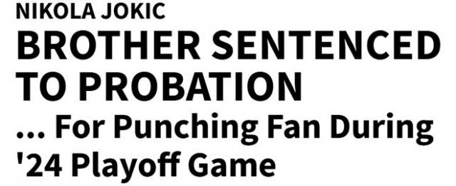 約基奇哥哥判12個月緩刑,免牢獄之災!源于2024年季后賽看臺打人事件