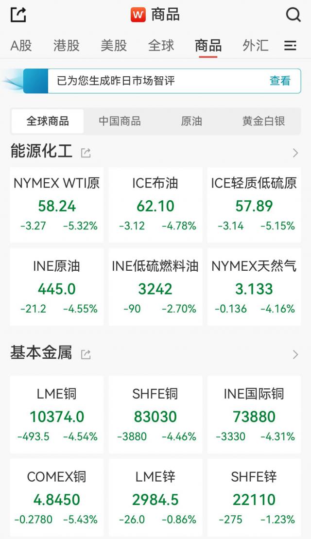 原油和銅價格跳水,美油主力合約跌超5%,LME期銅跌約4.5%;美元指數(shù)下跌超0.5%;美債和黃金價格拉升,COMEX期金漲約1.6%,連漲八周,十年期美債收益率一度跌至三周新低。