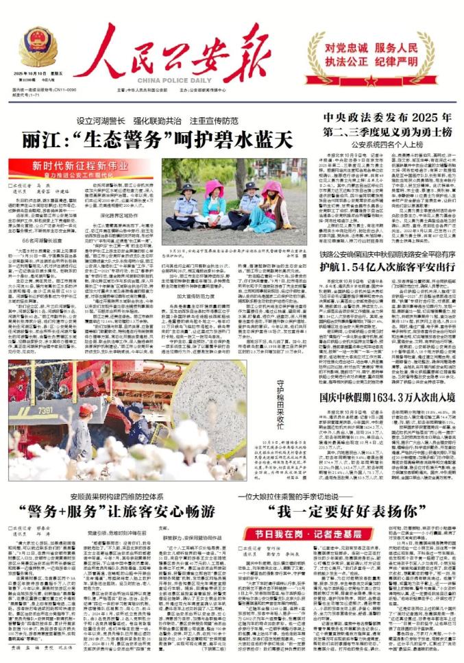 10月10日,《人民公安報(bào)》頭版頭條以《麗江:“生態(tài)警務(wù)”呵護(hù)碧水藍(lán)天》為題,報(bào)道了麗江公安生態(tài)警務(wù)的經(jīng)驗(yàn)亮點(diǎn),生動(dòng)展現(xiàn)了云南公安服務(wù)全省經(jīng)濟(jì)社會(huì)高質(zhì)量發(fā)展、助力筑牢祖國(guó)西南生態(tài)安全屏障的實(shí)踐成效。