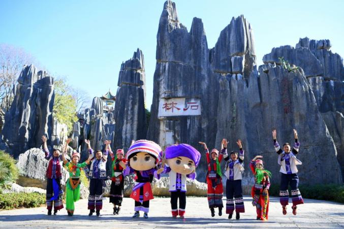 賽事當(dāng)天,石林西站以大三弦隊(duì)伍迎接跑者,“跑者之夜”還設(shè)有城市音樂會(huì)與篝火打跳。賽道沿線有大三弦、過山號(hào)助威,景區(qū)賽段同步展示非遺。在終點(diǎn)處,親子跑有少兒展演,歡樂跑配套美食集市與冰雪樂園優(yōu)惠。通過馬拉松賽事,昆明向世界展示優(yōu)美的自然風(fēng)光、良好的生態(tài)環(huán)境、多元的民族文化。