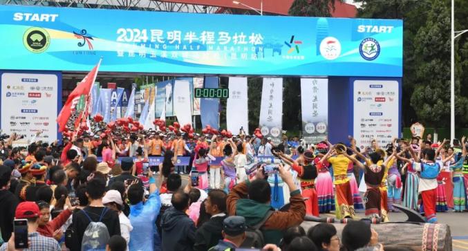 2024昆明半程馬拉松暨昆明玉溪雙城馬拉松(昆明站)開跑。劉凱達(dá)/攝
