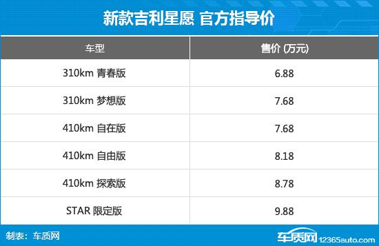新款吉利星愿閃亮上市,售價6.88 - 9.88萬元