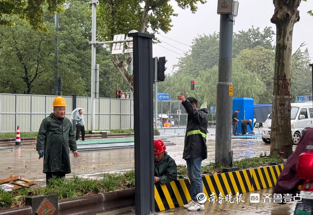 10月10日下午,記者在施工現(xiàn)場(chǎng)看到,泉城路(縣西巷—黑虎泉北路)路段的非機(jī)動(dòng)車(chē)道已用隔離墩、隔離帶等全面封閉,挖掘機(jī)、鏟車(chē)等施工車(chē)輛陸續(xù)進(jìn)場(chǎng)。道路兩側(cè),工人忙著固定圍擋支架、安裝擋板,將施工區(qū)域全面圍合。
