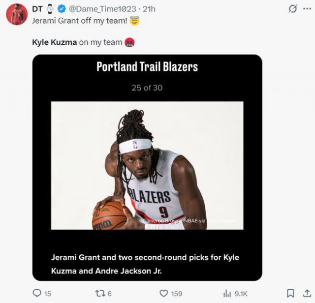 另一套是開拓者與雄鹿交易,雄鹿送出庫茲馬、安德森 - 杰克遜,得到杰拉米 - 格蘭特和兩個未來次輪簽。不過實際上,格蘭特也是負資產。
