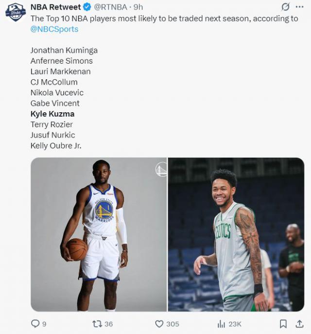 在NBC預測的將被交易的球員名單中,庫茲馬榜上有名,他與庫明加、安芬尼 - 西蒙斯、麥科勒姆等人一同上榜。