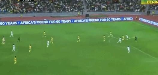 門將大腳將球開到前場,貝寧迅速發(fā)起進(jìn)攻,效力于法甲洛里昂的前鋒托辛將球打進(jìn)空門,貝寧1 - 0領(lǐng)先!