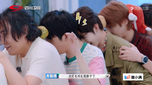 高能抽風團的“瘋”,是一場絞盡腦汁的演技大賞。破冰環(huán)節(jié)每見到一名新團員,舊團員就有一個隱藏任務。如果摸顏人中耳垂、穿大張偉的鞋還算自然,那么三人分別抱高瀚宇就有點“刻意”了。高瀚宇發(fā)現(xiàn)后無奈大喊:“你們看我像個啞鈴嗎?”