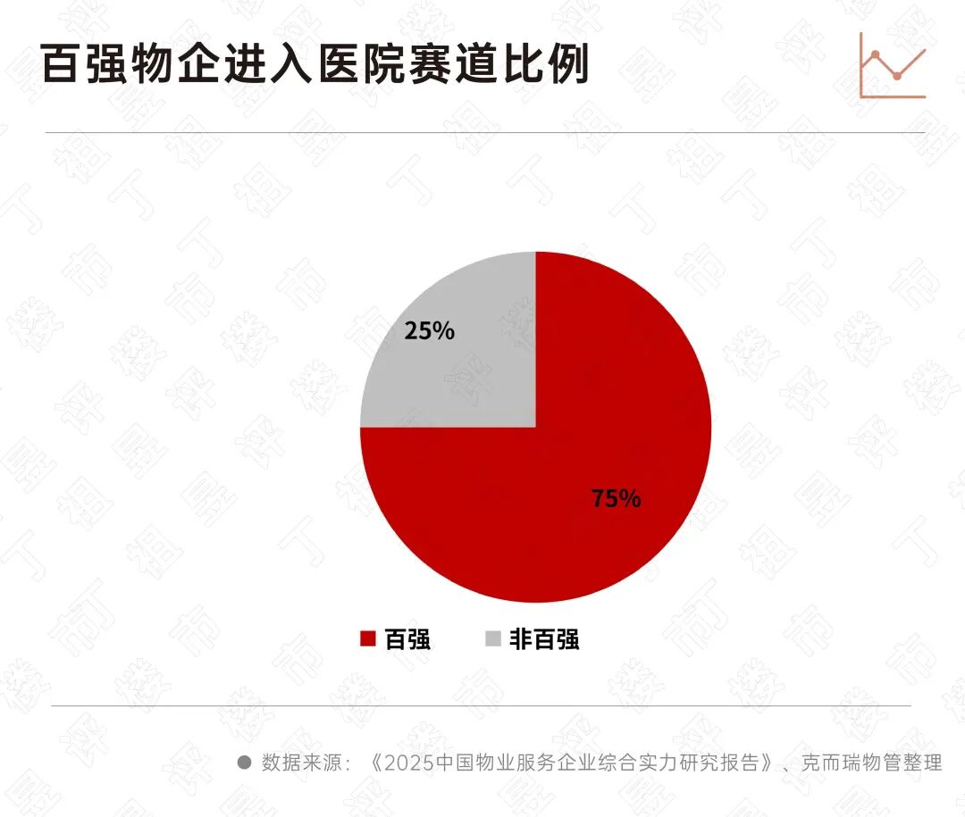從G端政府客戶(hù)來(lái)看,高校、醫(yī)院和公園/場(chǎng)館是物業(yè)服務(wù)企業(yè)競(jìng)相布局的重要業(yè)態(tài)。其中,醫(yī)院物業(yè)賽道吸引上下游企業(yè)加速布局。隨著醫(yī)保制度持續(xù)改革,倒逼醫(yī)院壓縮后勤預(yù)算,即便如此,百?gòu)?qiáng)物企中逾70%已進(jìn)入醫(yī)院服務(wù)領(lǐng)域,并且頭部物業(yè)企業(yè)更是推出了聚焦醫(yī)院后勤的子品牌。