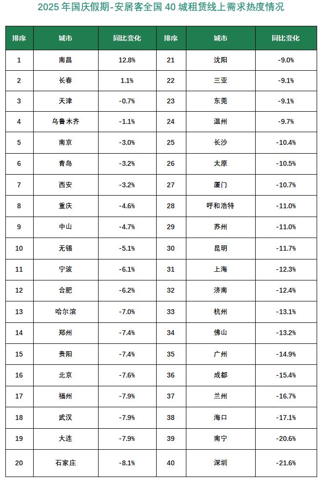 據(jù)58安居客研究院監(jiān)測,2025年國慶假期,40個重點城市租賃平均掛牌租金約38.1元/平方米/月,較9月底上漲約1%。