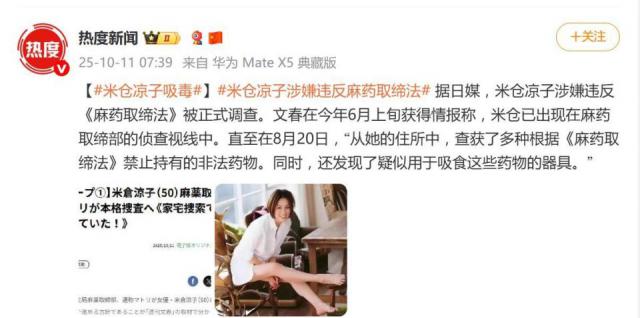 米倉(cāng)涼子涉毒風(fēng)波:真相待揭