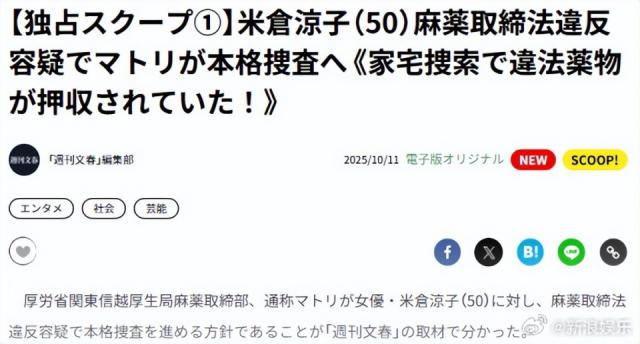 據(jù)媒體10月11日消息,日本演藝圈驚爆大新聞!《周刊文春》報(bào)道稱,8月20日,日本厚生勞動(dòng)省關(guān)東信越地區(qū)麻藥取締部(簡(jiǎn)稱“麻取部”)對(duì)米倉(cāng)涼子位于東京都內(nèi)的住所進(jìn)行了突擊搜查。該住所是她與阿根廷籍舞者男友半同居的愛巢,現(xiàn)場(chǎng)查獲了多種違反《麻藥取締法》的非法藥物及吸食用具,執(zhí)法人員當(dāng)場(chǎng)扣押了“種類多樣”的違禁品。