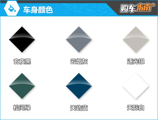 車身顏色有6種可選,都很大氣。個(gè)人更推薦天嶼藍(lán),與典雅外觀貼合,也是主打色。