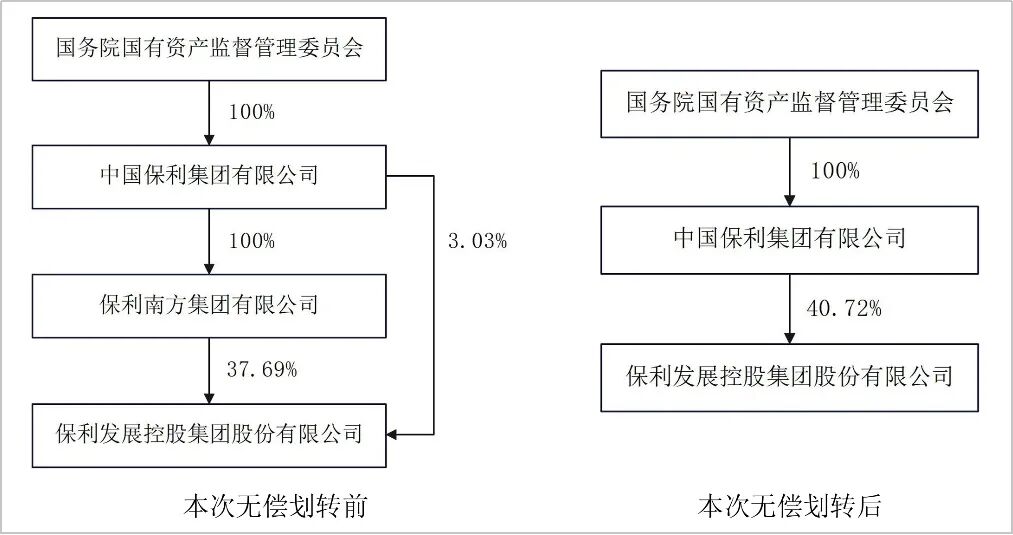 公告顯示,保利集團內(nèi)部進行了國有資產(chǎn)無償劃轉(zhuǎn),保利發(fā)展公司控股股東由保利南方變更為保利集團。