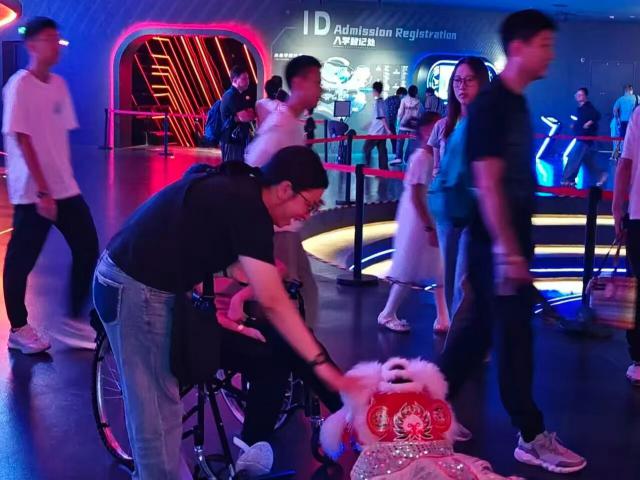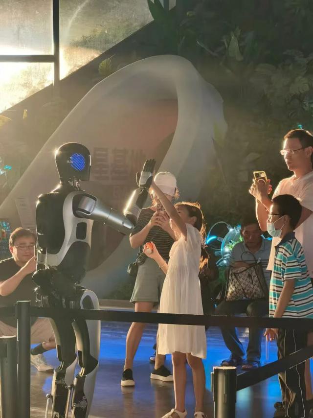 為提供具象化科技展示,1臺(tái)“智元機(jī)器人遠(yuǎn)征”與1只仿生機(jī)械狗在館內(nèi)巡游,通過(guò)握手、跳躍等動(dòng)作與游客互動(dòng),成為親子家庭關(guān)注的焦點(diǎn)。“千機(jī)科技”的無(wú)人機(jī)研學(xué)課程備受歡迎,國(guó)慶期間累計(jì)接待約60組家庭,學(xué)員在專業(yè)指導(dǎo)下完成無(wú)人機(jī)編隊(duì)飛行實(shí)踐,為青少年科普教育提供了創(chuàng)新形式。