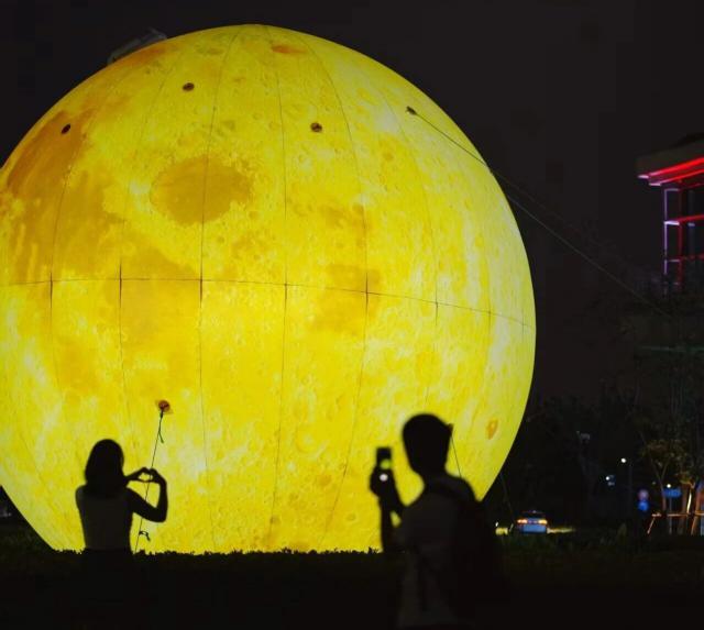 這場(chǎng)科幻主題的秋日派對(duì)狂歡到底多火?公共免費(fèi)區(qū)域2F “星云大廳”的三體有聲畫廊、觀星角、科幻嘉年華、匯星谷、大國(guó)重器展區(qū)持續(xù)高人氣,家長(zhǎng)與孩子在此探索科技裝置。在水一方的入口還出現(xiàn)了宇航員倚靠著超級(jí)大月亮的巨型13米裝置,連接科幻館的宇宙對(duì)話喇叭,單日最高客流突破4000人次。