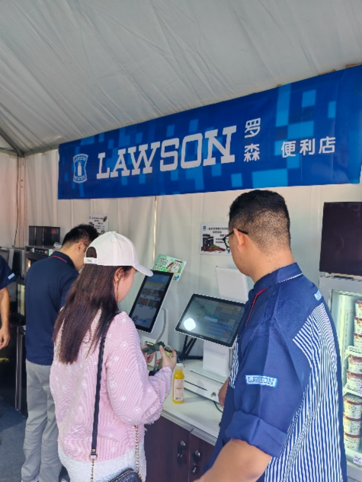 除了豐富多樣的商品選擇,羅森還將智能自助服務(wù)系統(tǒng)引入現(xiàn)場。通過展位內(nèi)設(shè)置的智能屏幕,消費者不僅可以快速完成商品選購與支付,還能了解商品信息并參與互動體驗,享受便捷、高效又有趣的購物過程。