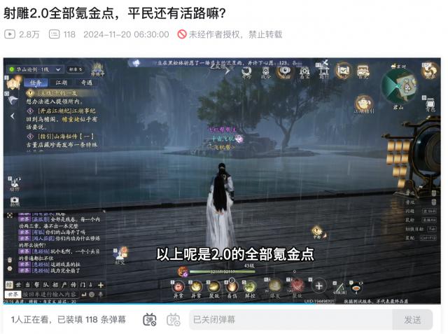 B站有位網(wǎng)友對“射雕2.0”的氪金點(diǎn)進(jìn)行了盤點(diǎn),花了20分鐘。