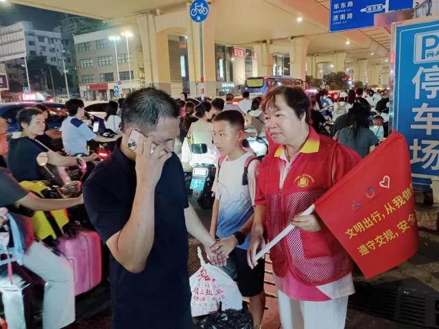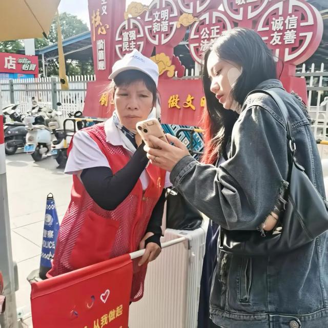 假期初期(10月1日 - 2日),志愿者們主動(dòng)與鐵路公安、公安交警聯(lián)動(dòng),全力守護(hù)旅客安全。在火車站主要通道,他們不斷提醒旅客“注意腳下、切勿奔跑”,防止意外發(fā)生;在交通繁忙路段,協(xié)助交警疏導(dǎo)交通,保障車輛和行人有序通行。面對(duì)旅客的問詢,他們總是耐心微笑回應(yīng)。
