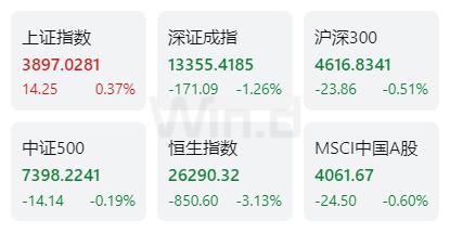中國市場:上證指數(shù)小漲0.37%,深證成指、滬深300指數(shù)、中證500指數(shù)下跌,跌幅分別為1.26%、0.51%、0.19%;恒生指數(shù)疲軟,累計(jì)跌3.13%。