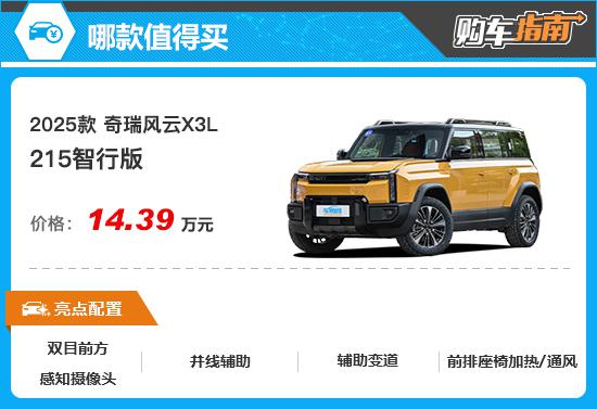 為滿足當(dāng)下消費(fèi)者多元化需求,各大汽車品牌都在努力提升自家產(chǎn)品競(jìng)爭(zhēng)力。前不久,奇瑞風(fēng)云X3L正式上市,這款定位為“可城可野”的時(shí)尚方盒子車型,外觀酷炫,內(nèi)部配置和動(dòng)力表現(xiàn)也相當(dāng)出色,一上市就受到消費(fèi)者廣泛關(guān)注。那么,新車哪個(gè)版本最值得購(gòu)買呢?本期《購(gòu)車指南》將為您詳細(xì)解析。