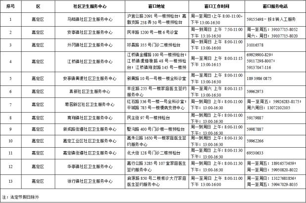 嘉定區(qū)社區(qū)衛(wèi)生服務(wù)中心簽約服務(wù)窗口一覽表