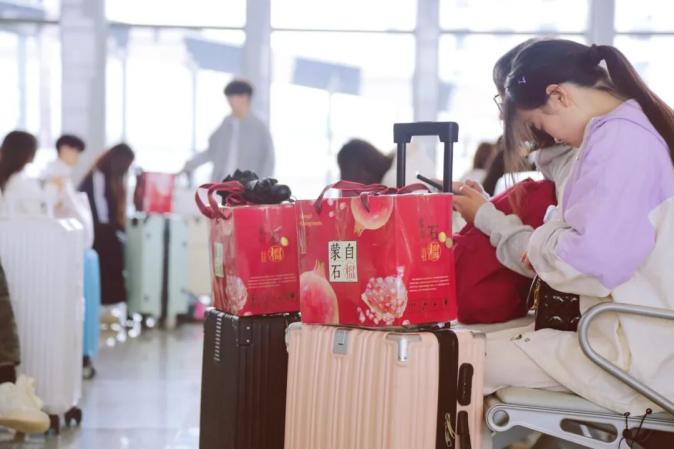 原來,這些圓球是有著“滇南紅寶石”之稱的蒙自甜石榴。這份來自北回歸線的甜蜜,成了備受旅客喜愛的“伴手禮”。