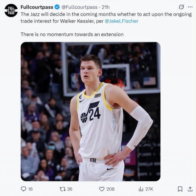 實(shí)際上早在9月26日,就有消息曝出凱斯勒與爵士的提前續(xù)約談判陷入僵局。三年級(jí)生的提前續(xù)約截止日是10月21日,凱斯勒可能無(wú)法與球隊(duì)達(dá)成續(xù)約,屆時(shí)湖人可能會(huì)重啟交易談判。此前有消息稱,爵士會(huì)索要里夫斯與兩個(gè)首輪簽。
