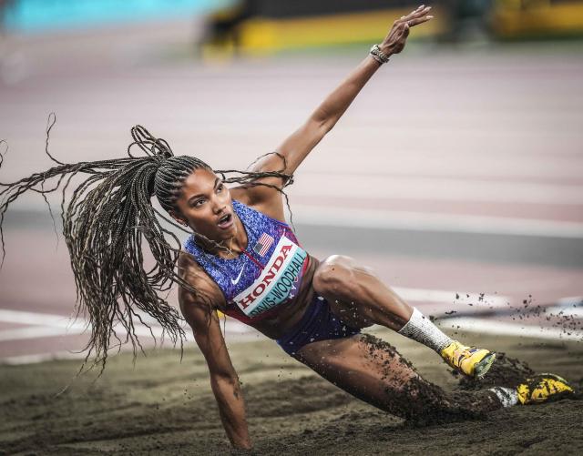 9月14日,美國選手Tara DAVIS - WOODHALL在2025東京田徑世錦賽女子跳遠(yuǎn)決賽中以7米13的成績獲得金牌。索尼Alpha 9 III + FE 400mm F2.8 GM OSS,魏征 攝