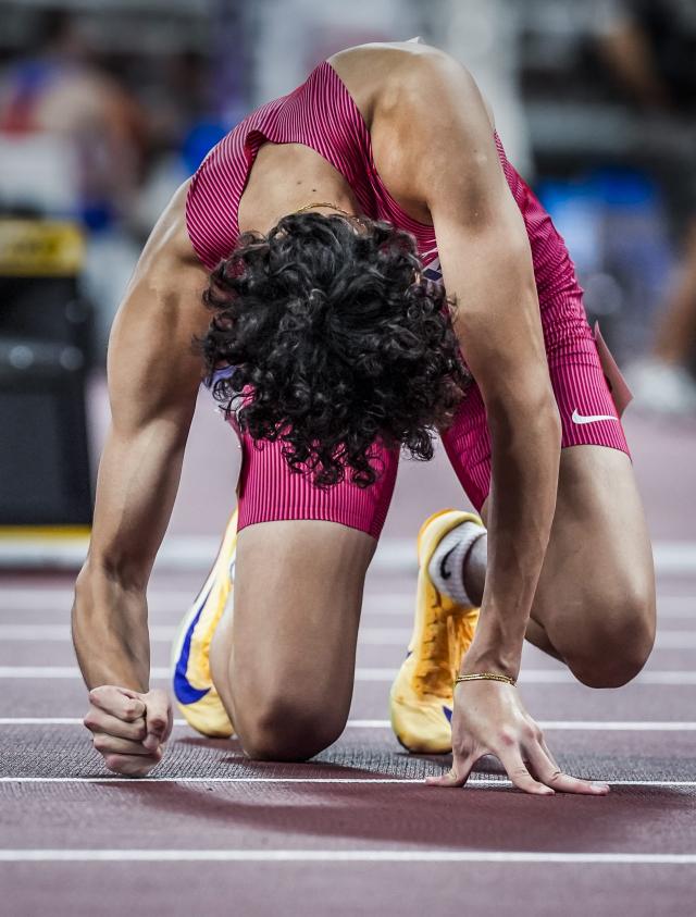 9月16日,印度選手KUSHARE在2025東京田徑世錦賽男子跳高決賽中失誤,最終以2米28的成績獲得第六名。索尼Alpha 9 III + FE 400mm F2.8 GM OSS,魏征 攝