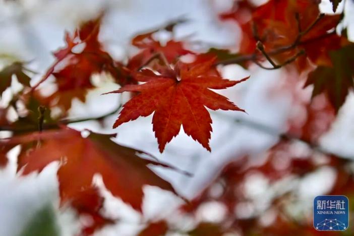 ↑ 這是10月10日在天橋溝景區(qū)拍攝的楓葉,鮮艷奪目。