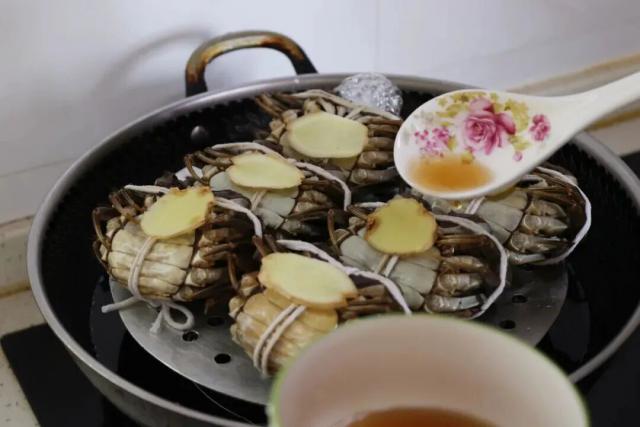 先處理螃蟹,用水沖洗并用刷子刷洗蟹殼、蟹臍、蟹爪縫隙,清洗后上鍋蒸,將蟹殼朝下、蟹身朝上,依次在蟹身上放姜片和少許黃酒去腥,蓋上鍋蓋大火蒸 15 - 20 分鐘左右,確保螃蟹完全熟透。