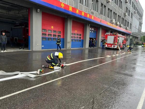 負責裁判的消防員解釋道:“一旦出現(xiàn)水帶卡口、脫口,隊員必須完成再次連接,否則成績將會被取消?!?/p>