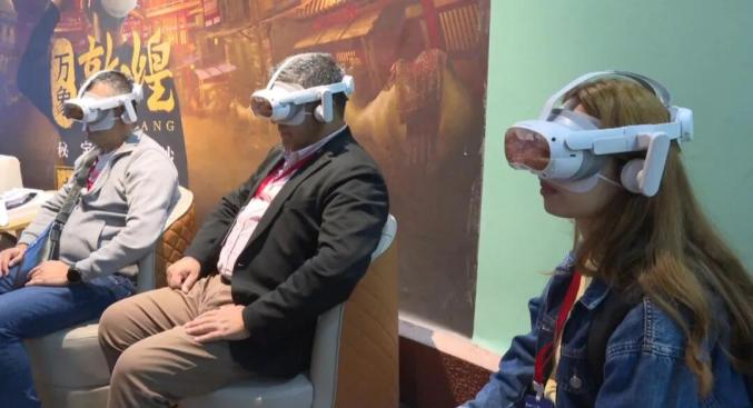 在敦煌市博物館,嘉賓們認(rèn)真觀賞文物,還體驗(yàn)了VR項(xiàng)目,仿佛穿越時(shí)空,回到古絲綢之路的繁華景象。之后,他們來到敦煌書局,參觀文創(chuàng)產(chǎn)品和各類書籍,感受敦煌文化的創(chuàng)意呈現(xiàn)和知識(shí)承載。