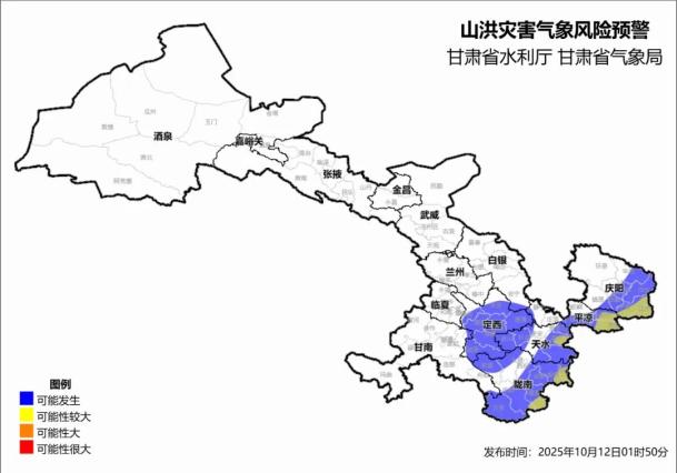 甘肅發(fā)布10月12日山洪災(zāi)害氣象風(fēng)險(xiǎn)黃色預(yù)警