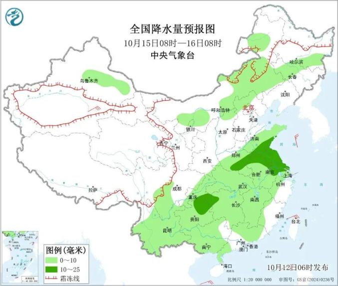 此外,14日至15日,陜西南部、四川盆地東部、黃淮大部、江淮東部等地有中到大雨。