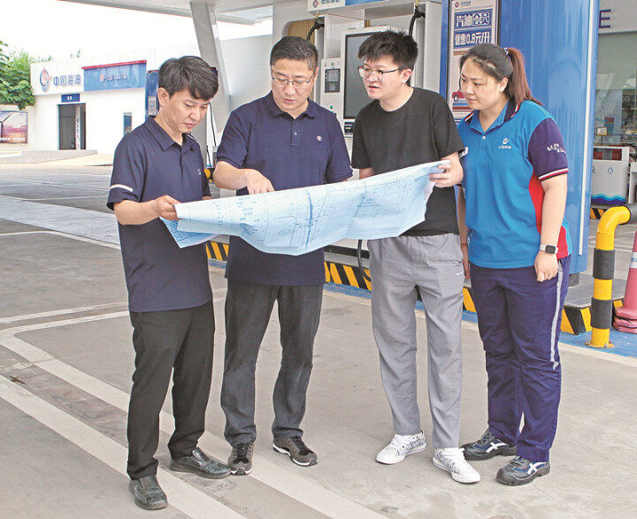 林宇(左二)在綜合能源站項(xiàng)目現(xiàn)場(chǎng)了解工程進(jìn)度。記者 陳立桐 攝