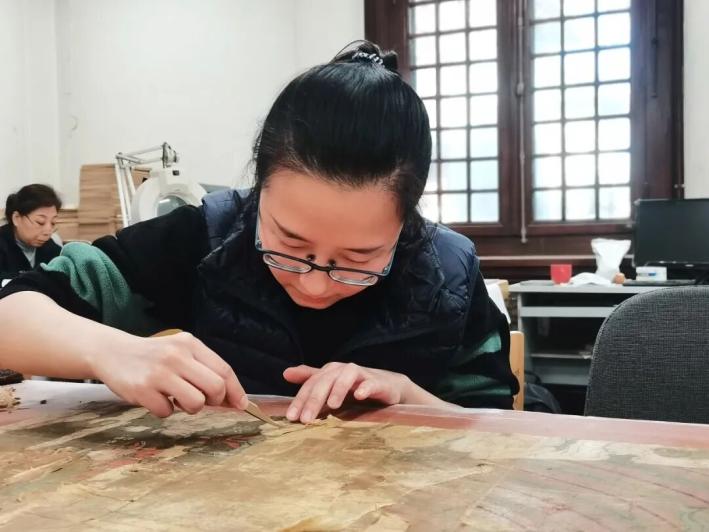 現(xiàn)在,宋晶每天在工作案幾前忙碌,修復藏文《大藏經(jīng)》、書畫拓片等文物。