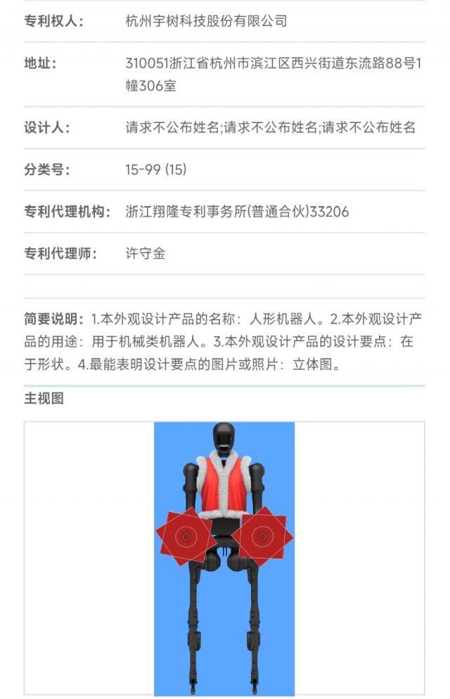 宇樹科技‘扭秧歌’人形機(jī)器人外觀設(shè)計(jì)專利獲授權(quán)