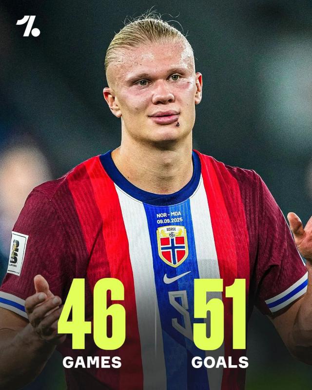 上一場(chǎng)國(guó)家隊(duì)比賽,挪威11比1橫掃摩爾多瓦,哈蘭德一人打進(jìn)5球。連續(xù)兩場(chǎng)國(guó)家隊(duì)比賽,哈蘭德共計(jì)打進(jìn)8球,效率驚人。賽后Opta統(tǒng)計(jì),本場(chǎng)比賽的3粒進(jìn)球讓哈蘭德職業(yè)生涯國(guó)家隊(duì)進(jìn)球數(shù)達(dá)到51球,而他僅用46場(chǎng)比賽就達(dá)成這一數(shù)字,超越了哈里 - 凱恩(71場(chǎng)),成為成年國(guó)家隊(duì)層面達(dá)成50球大關(guān)所用場(chǎng)次最少的球員。