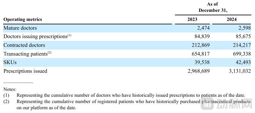 石榴云醫(yī)平臺上的醫(yī)生情況,是行業(yè)的一個縮影。招股書顯示,截至2024年底,平臺簽約醫(yī)生約21.4萬人(通過執(zhí)業(yè)資質(zhì)認證,可開展線上診療及開具處方的醫(yī)生);實際開具過處方的醫(yī)生人數(shù)為85675人,成熟醫(yī)生2598人(一個月內(nèi)為20個以上患者開具處方的醫(yī)生)。