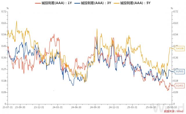 5. 近期城投債(AAA)各期限利差走勢(shì)及數(shù)據(jù)