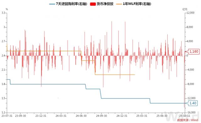 央行于10月11日開(kāi)展了1160億元7天期逆回購(gòu)操作,采用固定利率、數(shù)量招標(biāo)方式,操作利率為1.40%,投標(biāo)量、中標(biāo)量均為1160億元。據(jù)Wind數(shù)據(jù),當(dāng)日無(wú)逆回購(gòu)到期,因此單日凈投放1160億元。